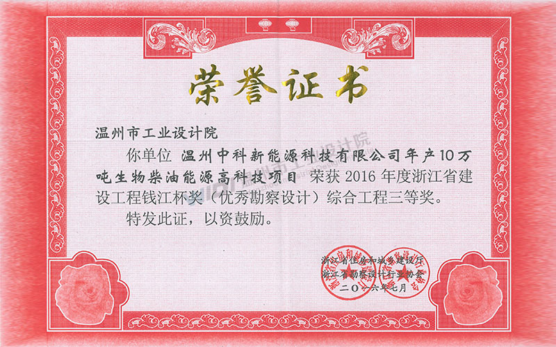 溫州中科新能源科技有限公司年產(chǎn)10萬噸生物柴油能源高科技項目 錢江杯 綜合工程三等獎